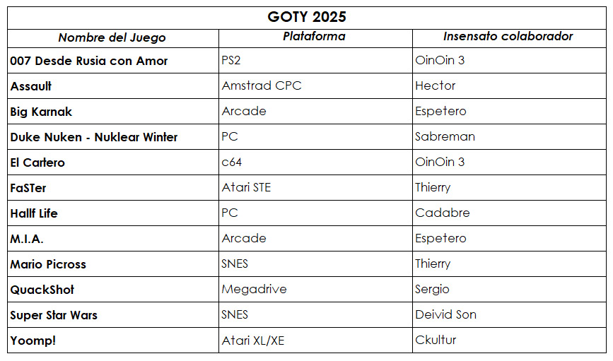 Se trata de que VOSOTROS votéis cuál consideráis que es el mejor juego del año (GOTY) que os hemos traído a lo largo de los últimos programas de Retro Entre Amigos en 2025. Cada persona podrá votar una vez y solamente a UNO de los juegos de la lista.
