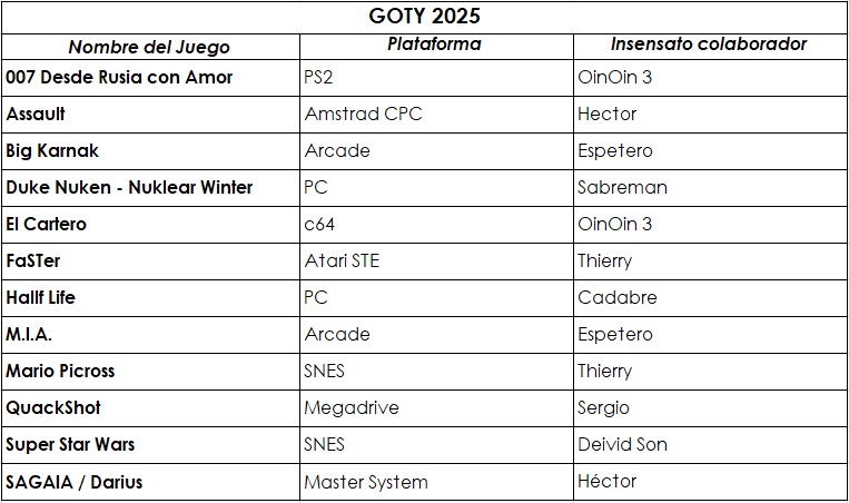 ¡Importante! Por fin podéis votar nuestro especial y particular GOTY. Un total de doce juegos de lo más variopinto: de lo más retro al 3D profundo, como nosotros, eclécticos.